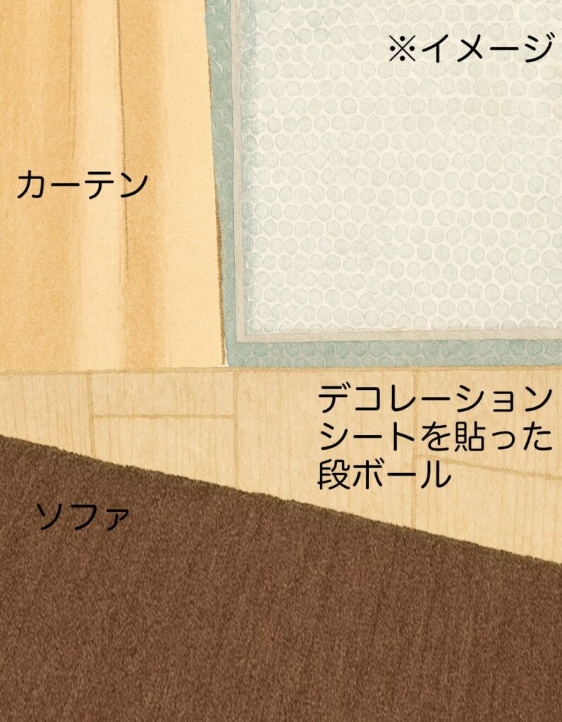 うちはカーテンの前にソファを置いているので、カーテンとソファの間にたたんだ段ボールを置いています。