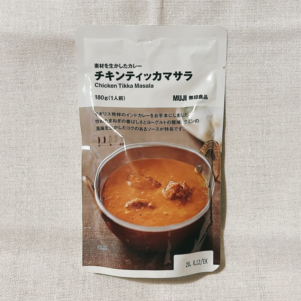 今回は、**無印良品のレトルトカレー「チキンティッカマサラ」**です。