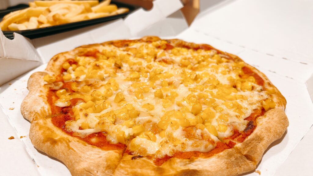 ピリ辛でマヨコーンピザが引き締まって、これがまたおいしい…!