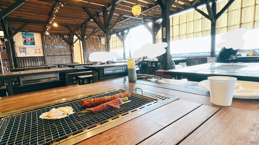 黒潮市場では、ホタテと肉巻きおにぎりでひとりBBQ。