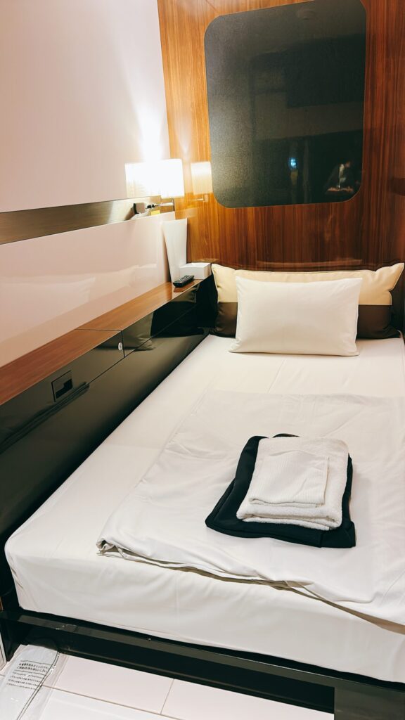 カプセルホテルなのに大浴場もあって、広さは2~3人入れるくらいの広さだけど、清潔感があって快適でした。